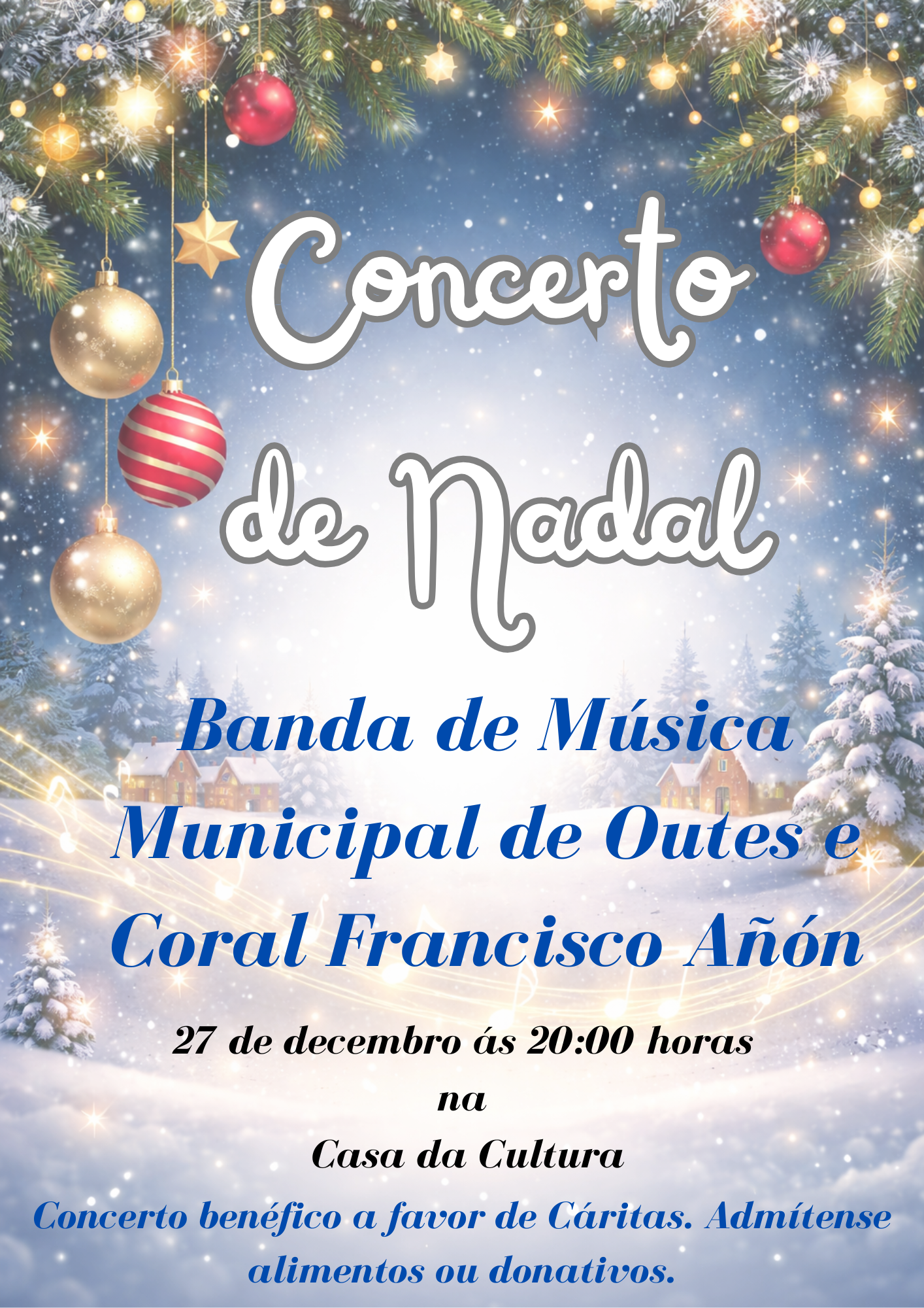 O sábado 27 de decembro ás 20:00 horas na Casa da Cultura, a Escola Municipal de Música e a Coral Francisco Añón darán un Concerto benéfico a favor de Cáritas.