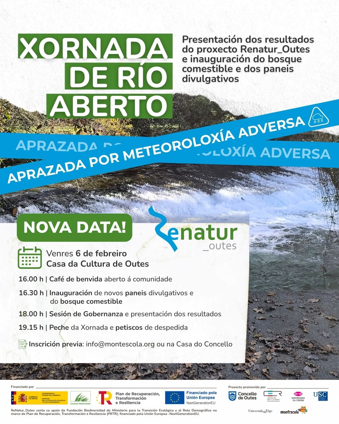 Xornada de RÍO ABERTO adiada por meteoroloxía adversa, nova data venres 6 de febreiro.